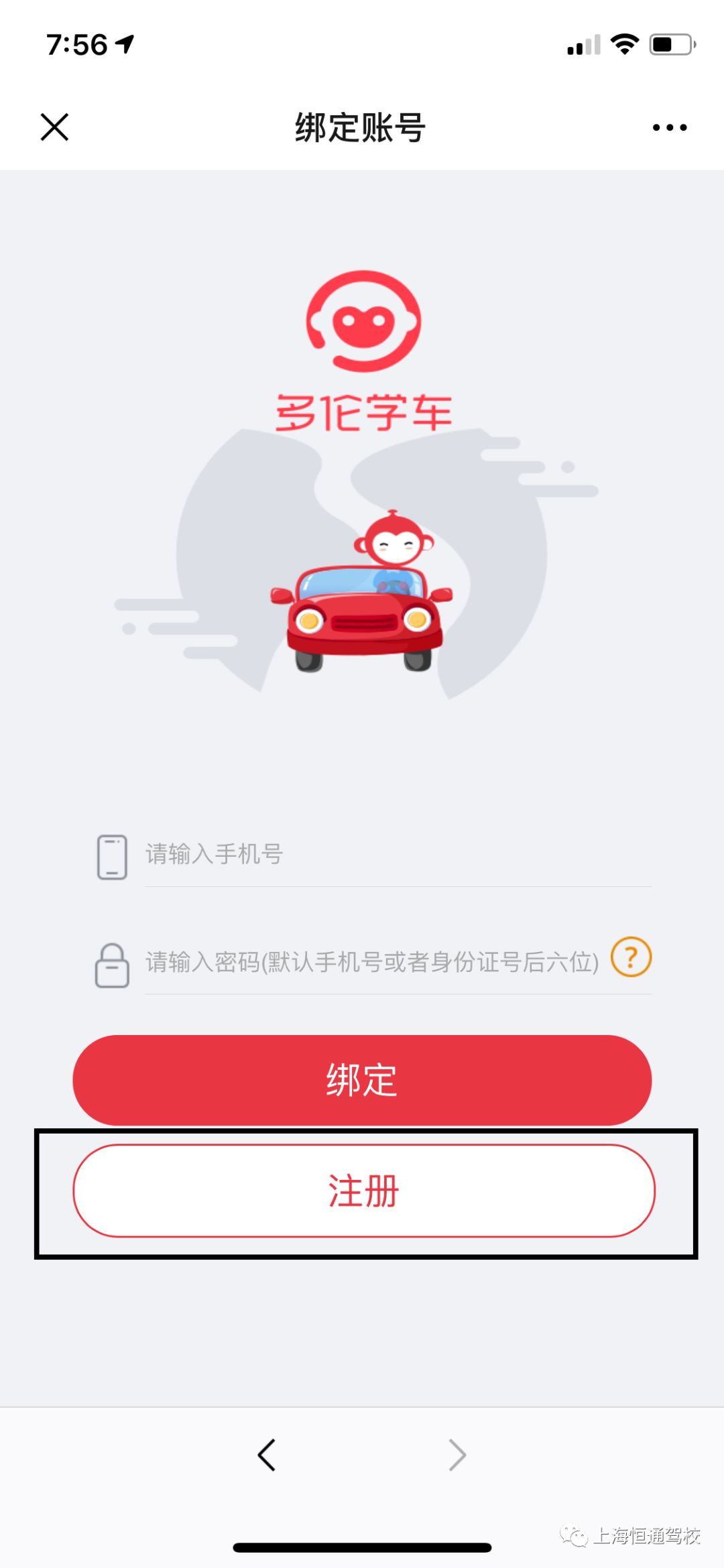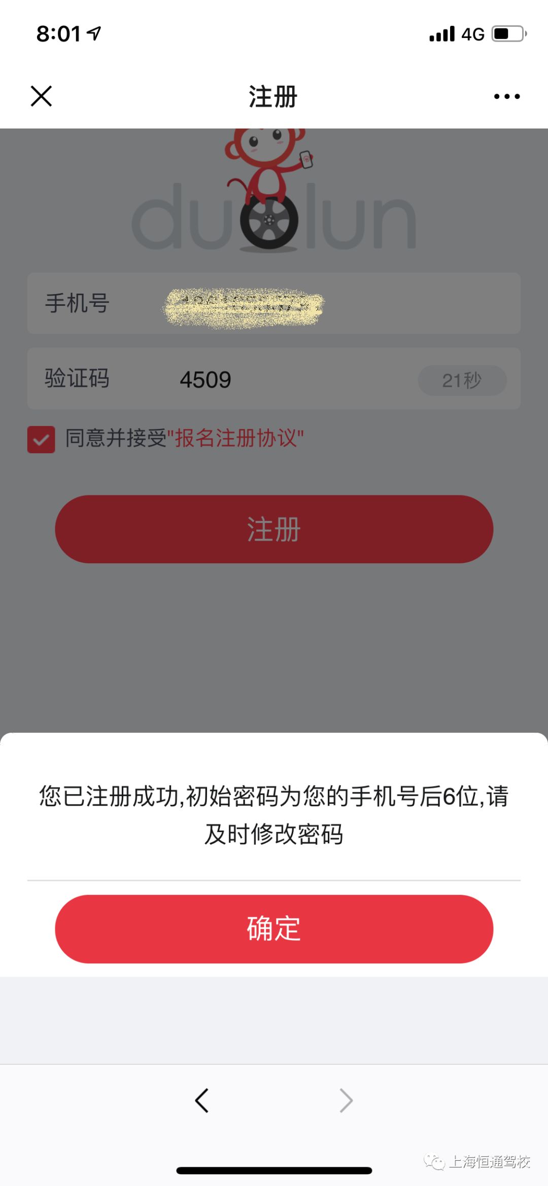 学员须使用报名时登记的手机号码进行注册,注册成功后进入预约界面。