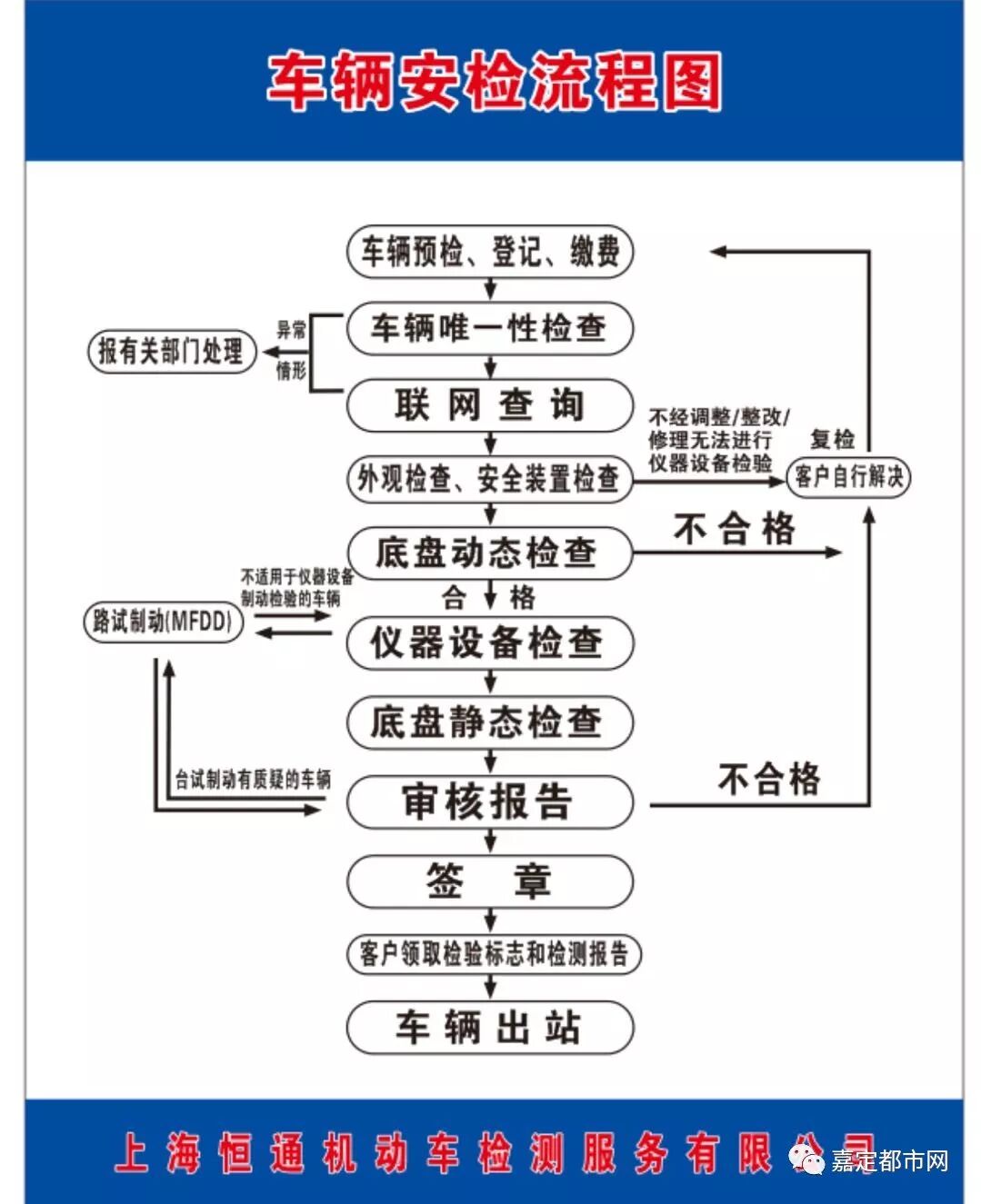 恒通机动车检测中心 地址:嘉定区马陆镇科盛路1000号 (宝安公路科盛路口往南500米) 预约、咨询电话:69531258 工作时间:周一至周六 8:30—16:30